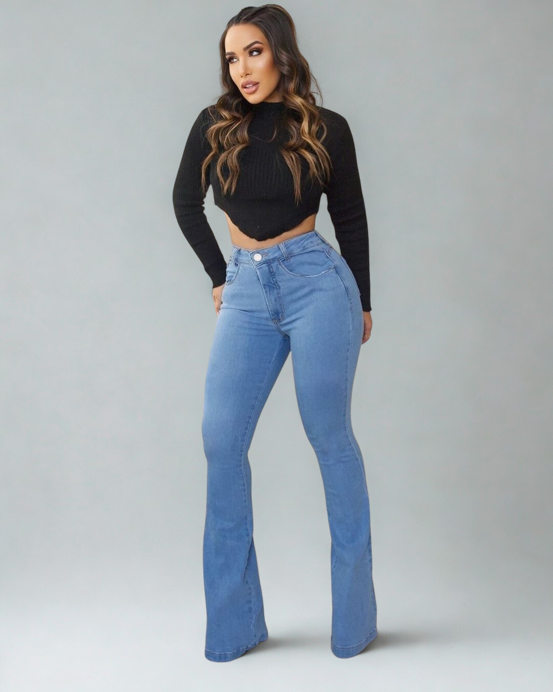 Estilo é sentir-se confortável, e a Calça Flare Laís proporciona exatamente isso. Feita em jeans com elastano, esta calça combina a versatilidade do denim com um design que valoriza a silhueta, sem abrir mão do conforto.